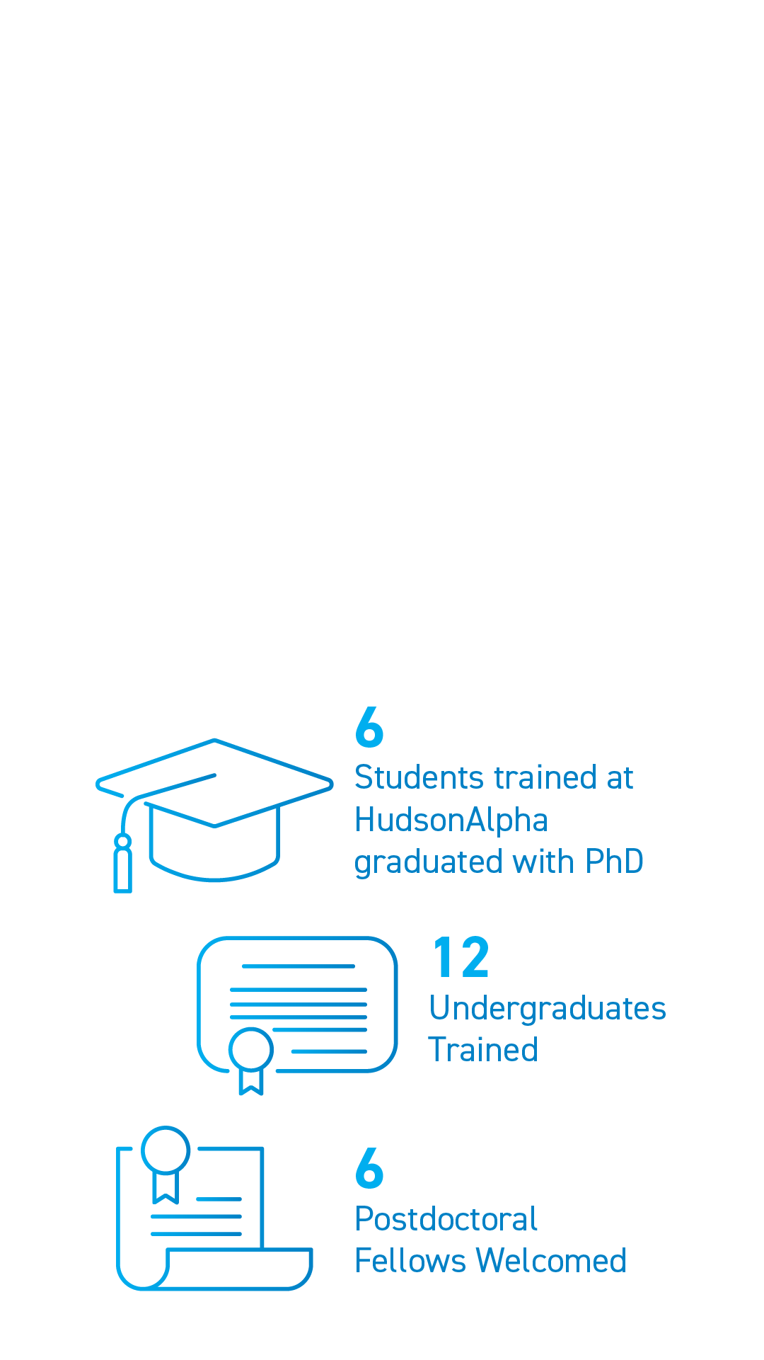 Throughout 2023, HudsonAlpha Institute for Biotechnology celebrated its 15th anniversary, reflecting on the past and making bold plans for the future. Research, one of the three mission areas for HudsonAlpha, has maintained productivity and impact since the Institute opened its doors. This year was no exception.